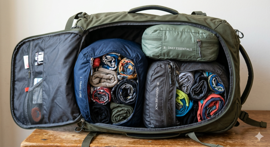 Group your clothing logically within these cubes. Dedicate one cube to shirts, another to pants, and a smaller one to undergarments. This modular approach makes it incredibly easy to unpack at your hotel without destroying the organization of your entire bag.