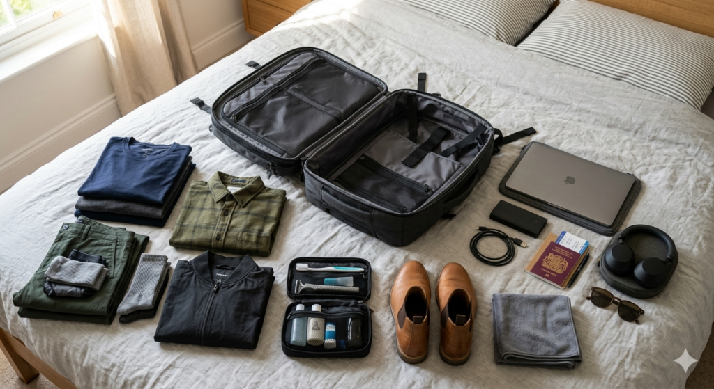 The upper-middle section of your bag is reserved for the bulk of your wardrobe. This is where a solid minimalist packing guide becomes invaluable. Instead of folding your shirts and pants traditionally, roll them tightly into cylinders to eliminate dead space and reduce fabric creasing.
