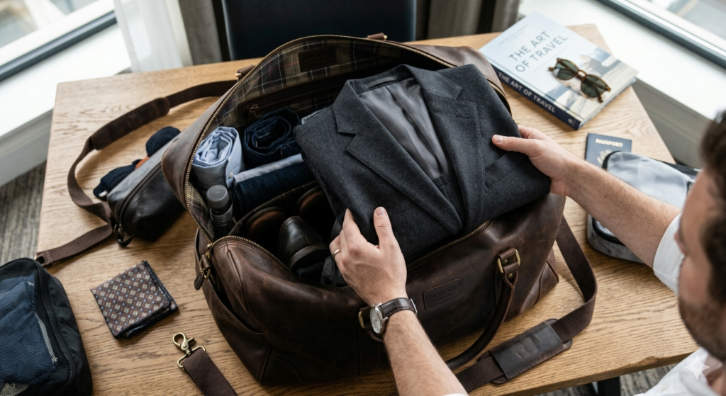 How do you pack a suit in a duffel bag? The most effective method is utilizing the “shoulder-in-shoulder” fold to protect the jacket’s structure. By turning one shoulder inside out, tucking the opposite shoulder inside it, and placing the bundle in a protective sleeve, you prevent crushing and hard creases.