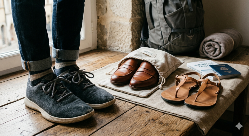 The golden rule of travel footwear is to limit yourself to a maximum of two or three pairs total. This typically includes a comfortable walking shoe, a formal or specialty shoe, and a lightweight pair of sandals. When traveling with multiple shoes, the most effective space-saving strategy happens before you even touch your bag.