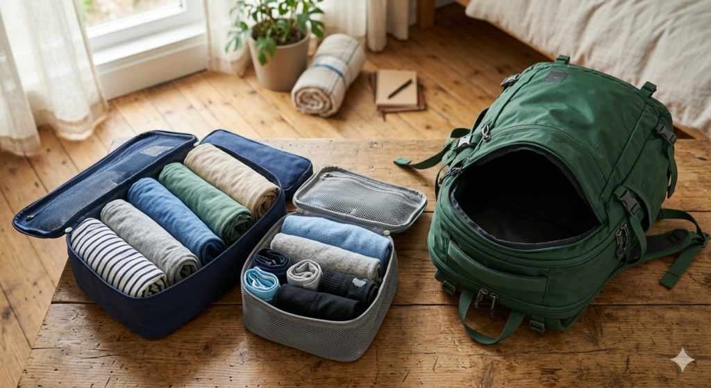 Successfully fitting everything into one bag relies on a few core packing strategies. First, coordinate your wardrobe around a single color palette. This allows every shirt to match every pair of pants, creating multiple outfits from a small number of items.