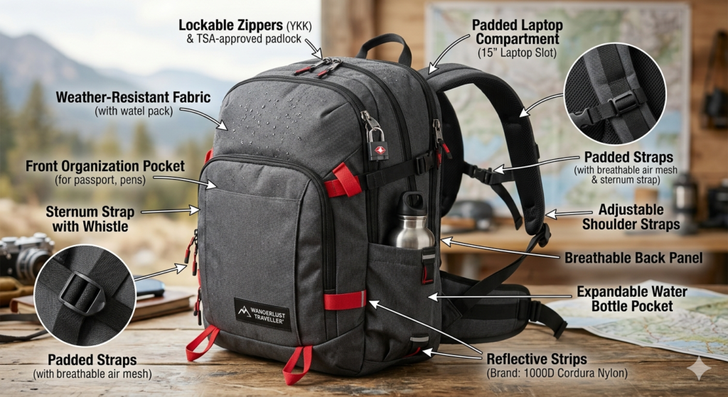 - Lockable zippers: For added security in crowded areas or hostels.